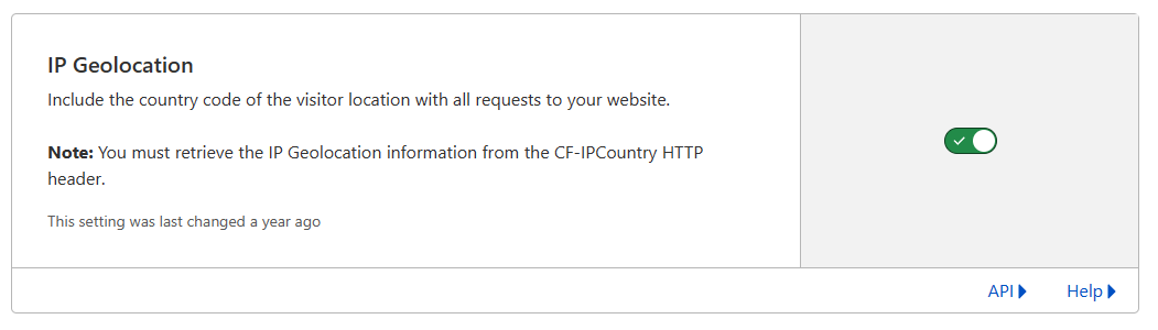 Vous pouvez activer Géolocalisation IP have Cloudflare géolocaliser les visiteurs de votre site Web et de vous transmettre le code du pays dans la norme ISO 3166-1 Alpha 2 format.